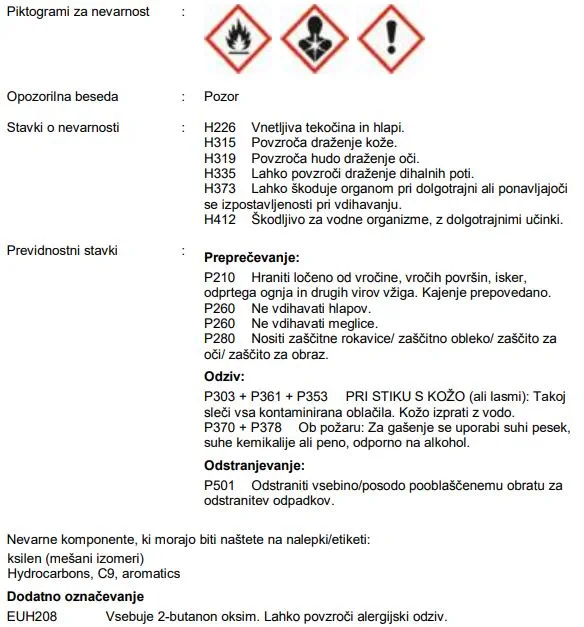 - VOC skladnost: izdelek je zasnovan tako, da ustreza strogim evropskim direktivam o emisijah hlapnih organskih spojin za industrijsko lakiranje,