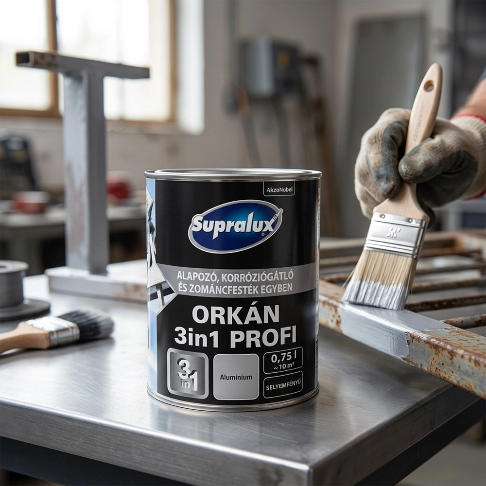 Barva za kovino 3v1 RAL 0,75/2,5L ORKAN PROFI Supralux je primer, zaviralec korozije in emajl barva v enem za zunanje in notranje kovinske konstrukcije.