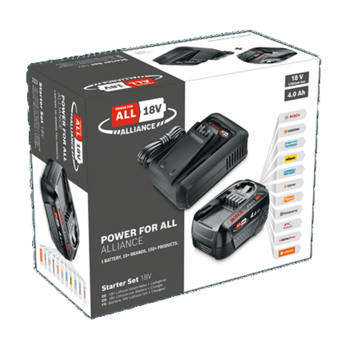 Starter set 18V baterija 4Ah + polnilec 1600A031T6 BOSCH (zelena linija) POWER FOR ALL ALLIANCE akumulatorski sistem za prilagodljivost in prihranek denarja.