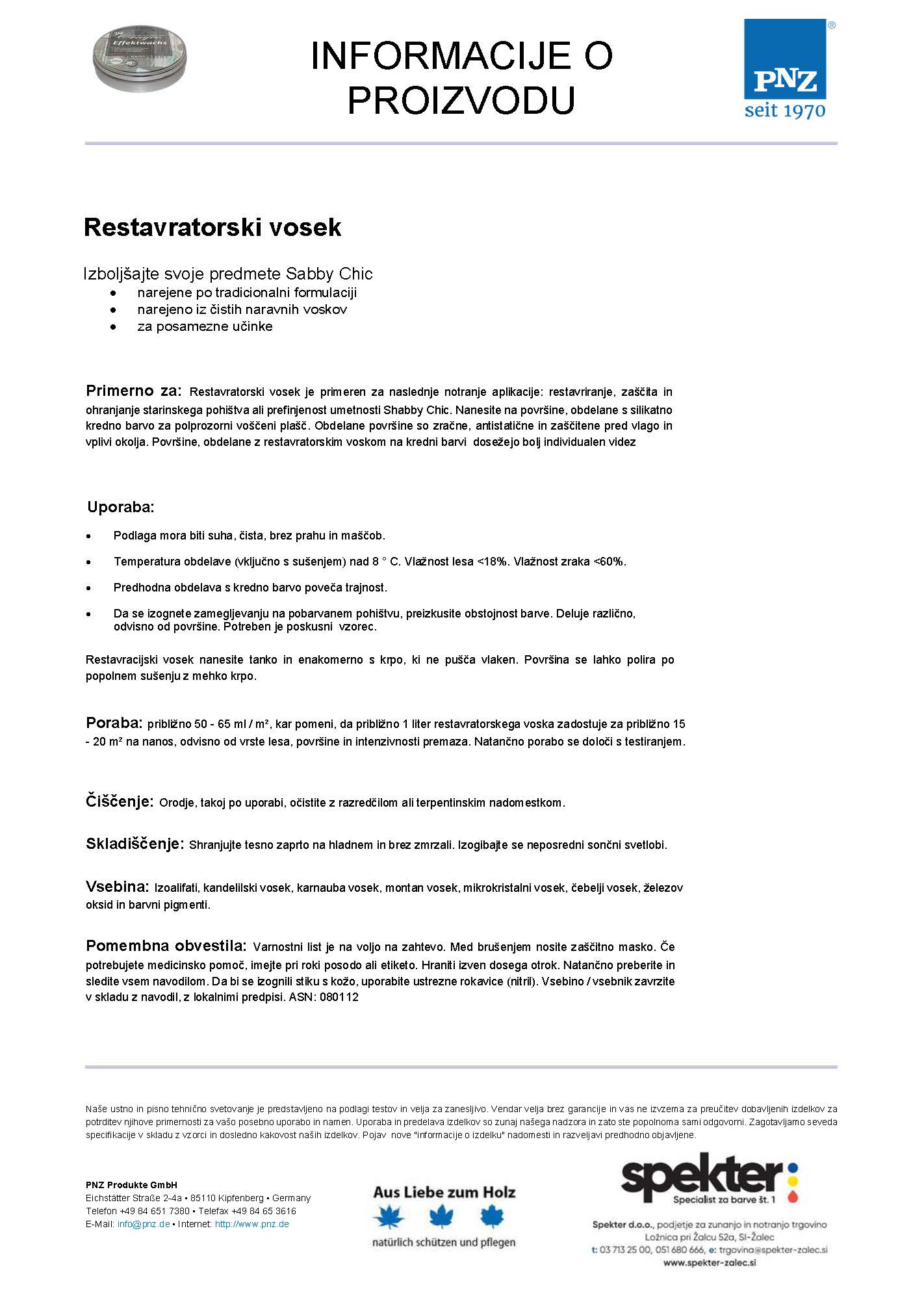 - Vosek za pohištvo PNZ nanesite na tanko in enakomerno s krpo, ki ne pušča vlaken. Površina se lahko polira po popolnem sušenju z mehko krpo,
