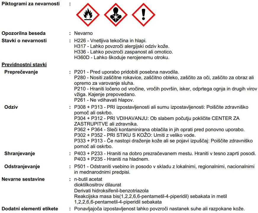 Če želite prilagoditi stopnjo sijaja (mat videz), se priporoča uporaba Dynacoat Clear Matt. Za čiščenje opreme po uporabi pa uporabite nitro razredčilo.