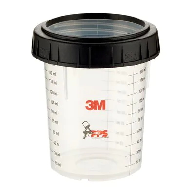 Mešalni lonček z objemko PPS 170ml 16115 3M ima natisnjena razmerja, da zagotovi najbolj natančno možno mešanje. Lončki za večkratno uporabo so prozorni, za lažji nadzor porabe materiala med brizganjem.