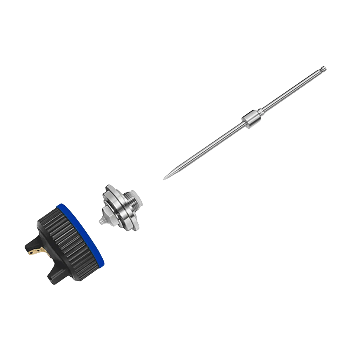 Šoba za lakirno pištolo 1,3 CC SATAjet X5500 RP 1174606 SATA je na voljo v kompletu, ki vključuje šobo, iglo in zračno kapico.