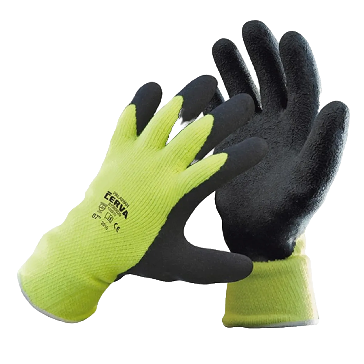 - PU premaz za oprijem: dlan in konice prstov so prevlečeni s poliuretanom, ki zagotavlja varen oprijem orodja in materialov, tudi ko so ti hladni,