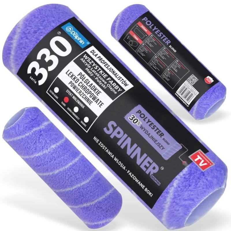 Valjček za pleskanje 18cm/25cm (9/13mm) SPINNER 330 B Dolphin je narejen iz inovativne mešanice poliestra, namenjen za akrilne barve, emulzijske barve, lake, temeljne premaze in smole.