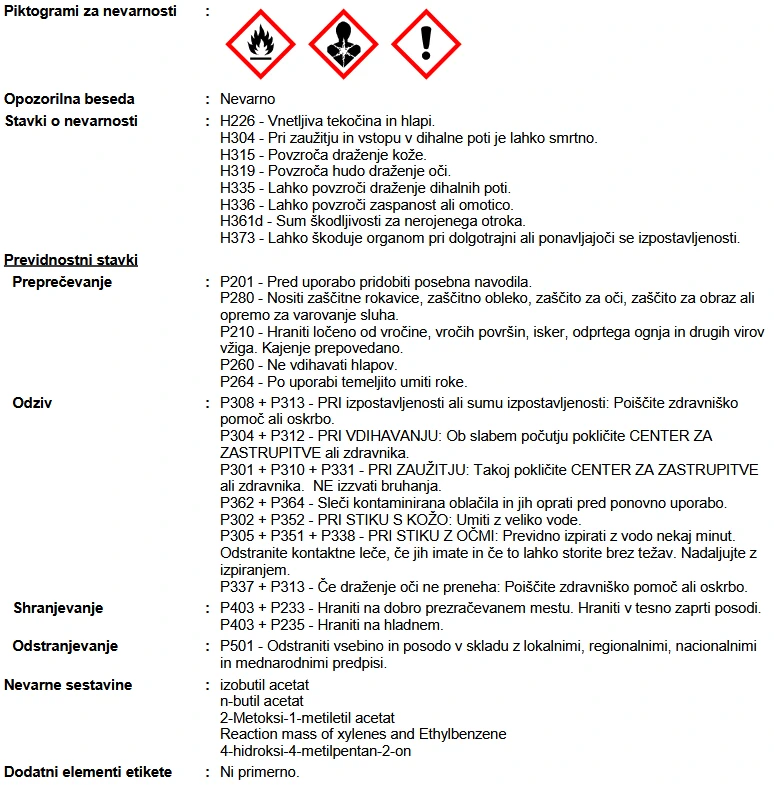- Vrhunska razlivnost: razredčilo kljub hitrosti zagotavlja, da se lak ali barva enakomerno razlijeta, kar preprečuje nastanek “pomarančne kože”,