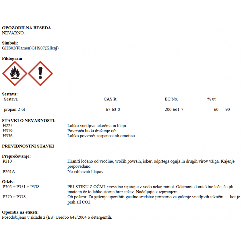 - Zelo čista raztopina izopropil alkohola v vodi,