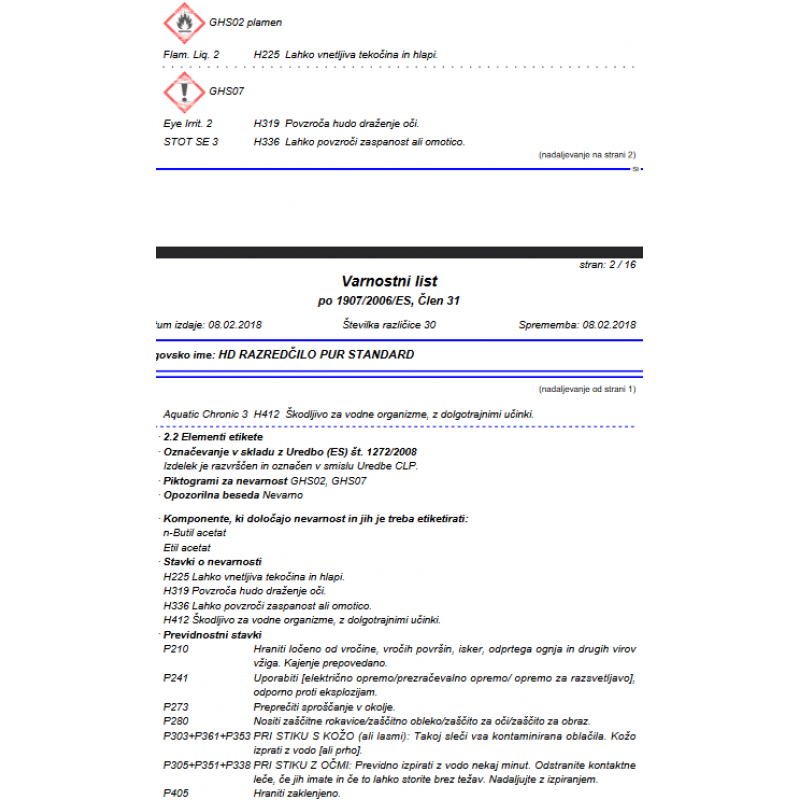 Redčilo HD-PUR VERDÜNNUNG 960-0102 Heidelberg se dodaja cca. 5 – 10% v HD PUR in HD CRYL lak sisteme. Mešanica se mora dobro premešati.
