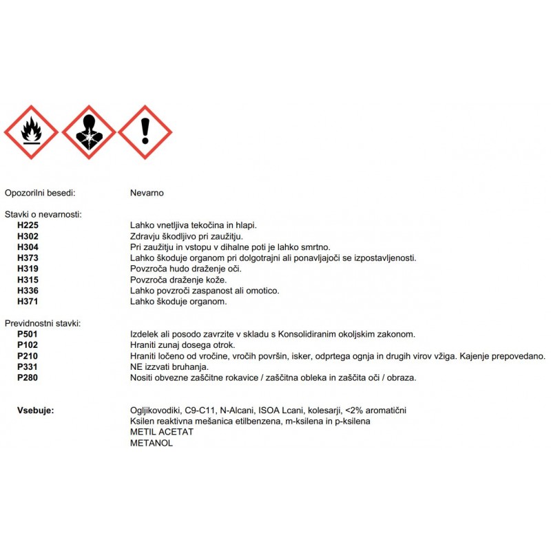 Sintetično razredčilo 1L SINTEX 22 CBR Chimica je izredno kvalitetno sintetično redčilo in topilo primerno za redčenje alkidnih barv in lakov ter čiščenje orodja.