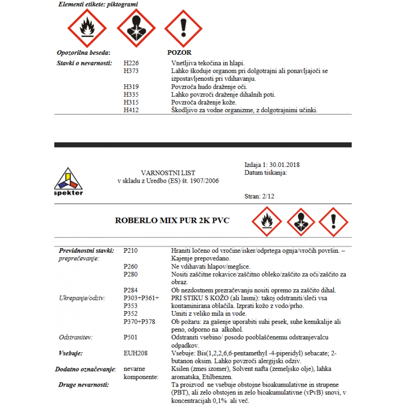 Specifikacije poliuretanske barve za plastiko 2K PUR 870 Roberlo